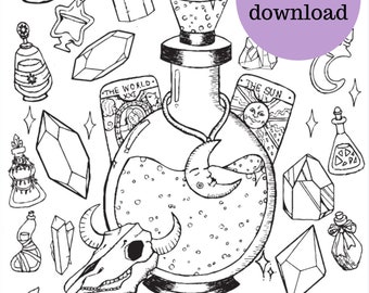 Witchy Coloring Pages Crystal Coloring Pages Printable Etsy
